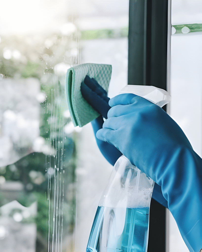 Streak-free cleaning of internal windows and accessible external glass at ground level.